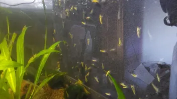 Und hier noch meine Garnelchen. Habe rote, wilde und gelbe - darunter auch viele andere Farben durch den Mix, die sich aber leider nicht halten. :3